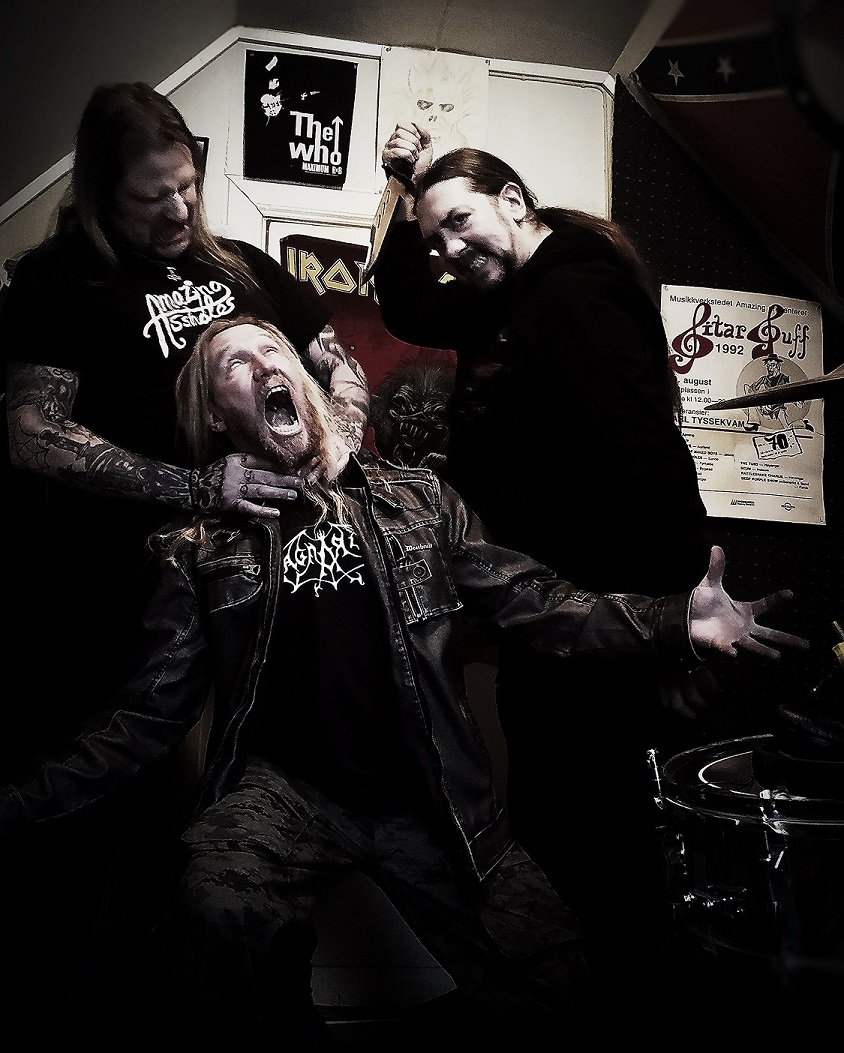 Today Espen is running the band together with his trusted right hand, Torgeir ‘Alvakien’ Espedal, the new guitar player. Other members who have contributed are: Arne Gandrud (Massemord,Maosoleum of death), Ole Nic (Trelldom, Spitfire), Bjørn Beelzeböb Berge (Spitfire), Chris “The headhunter”Rygh. Steinar Aven is active in several other bands, like Nattverd (blackmetal), Chinbjer (blackmetal), Aventyr (hard rock), Steinras (blackmetal), Amazing assholes (hard rock), and others. So he is a busy guy.