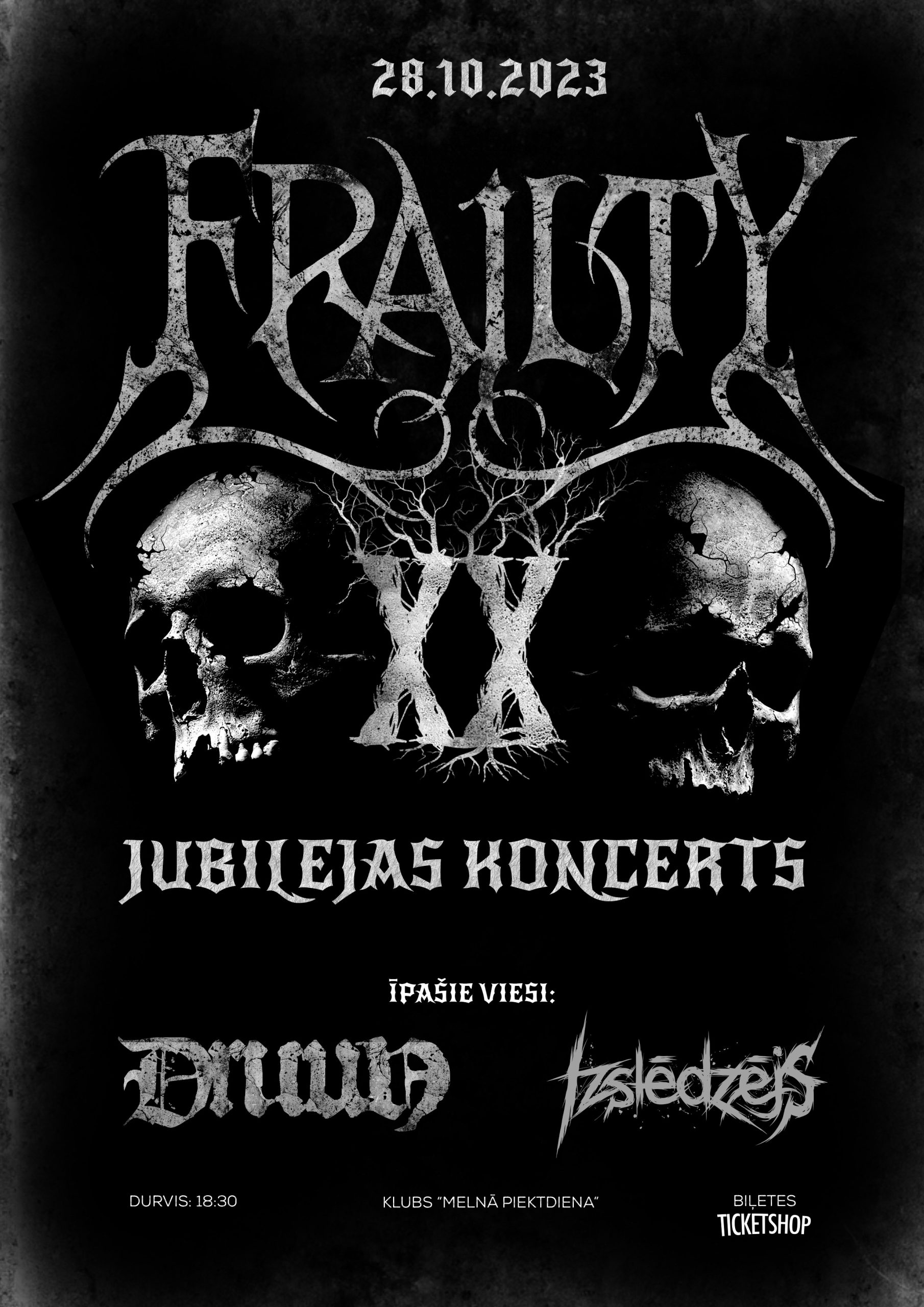 Doom/Death Metal grupa Frailty aicina savus klausītājus un ikvienu smagās mūzikas draugu 28.oktobrī uz klubu Melnā Piektdiena, lai kopā nosvinētu grupas 20. gadu jubileju.