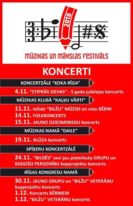 Rīgas Kongresu namā 30. novembrī mūzikas un mākslas festivāla “BILDES 2018” ietvaros notiks koncerts, kurā festivāla rīkotājs “BILŽU BIROJS” aicina uzstāties jaunās, mazpazīstamās, “BILDĒS” vēl nestartējušās mūzikas grupas kopprojektos ar kādu Latvijā jau pazīstamu mūziķi. Šāds kopprojektu koncerts pirmo reizi notika 2001. gadā, un šobrīd tas jau ir kļuvis par neatņemamu festivāla daļu, kam raksturīgi jauno un pieredzējušo mūziķu kopīgi veidoti, radoši un izdomas bagāti priekšnesumi.