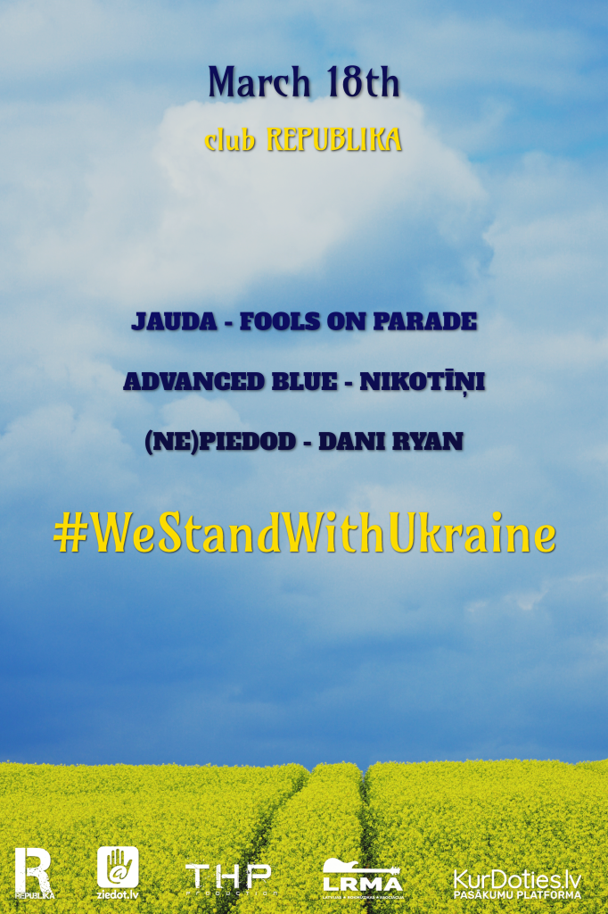 Piektdien, 18. martā, klubā „Republika” notiks labdarības koncerts „WeStandWithUkraine”, kurā piedalīsies alternatīvās mūzikas pārstāvji „Dani Ryan”, „Nepiedod”, „Nikotīņi”, „Advanced Blue”, „Fools On Parade” un „Jauda”, tādējādi paužot atbalstu un solidaritāti Ukrainai tās cīņā pret Krievijas militāro agresiju un cīņā par valsts neatkarības saglabāšanu.